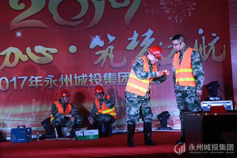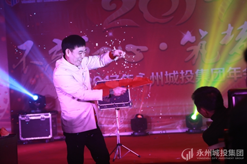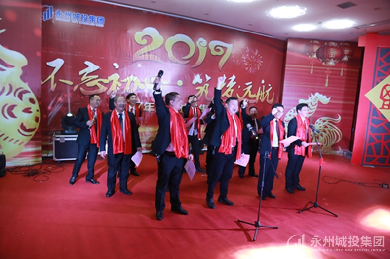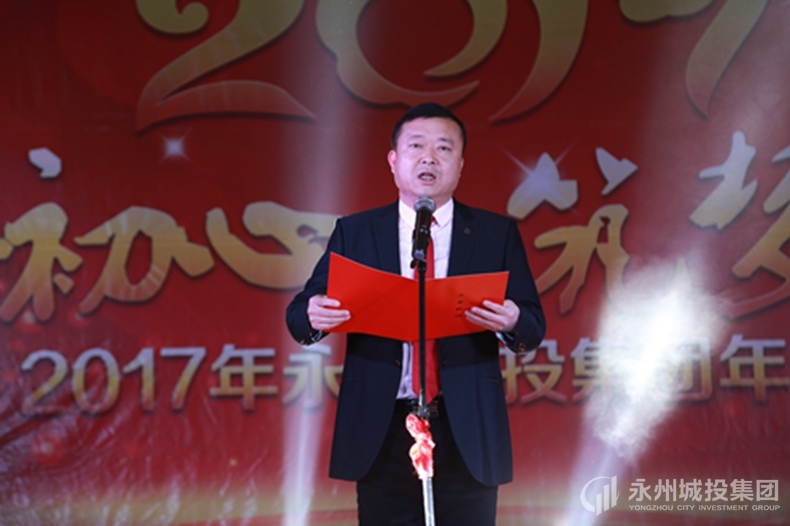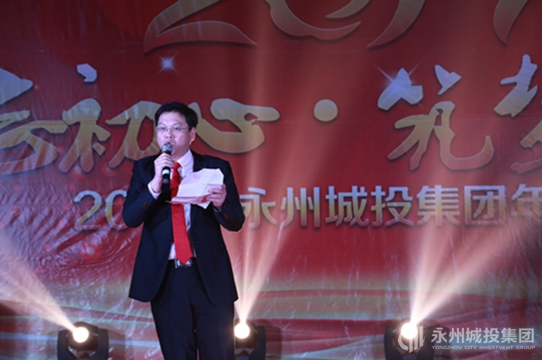 伴隨著氣勢恢宏的開場鼓舞《擊鼓踏春》,晚會正式拉開了序幕。集團董事長、黨委書記李世旺上臺發(fā)表了開幕致辭:“向敢爭敢拼、銳意進取的全體同仁、及長期在幕后為永州城投的發(fā)展事業(yè)默默奉獻的所有家屬致以崇高的敬意和由衷的感謝!正是因為您們的辛勤付出和無私奉獻,城投之船才得以乘風破浪,一路前行。2017年,我們將牢固樹立時不待我的緊迫意識,把市委、市政府的決策和安排布置的任務(wù),扛在肩上、抓在手上、落實到行動上,以一流的執(zhí)行力推進基礎(chǔ)性、公益性和對永州發(fā)展有重大影響力的大項目和民生項目,以一流的創(chuàng)新力推進經(jīng)營性項目建設(shè),力爭全面完成市委、市政府下達的中心城市建設(shè)項目年度進度及投資籌資任務(wù),為全市經(jīng)濟社會發(fā)展提供有力支撐!我們將緊緊抓住千帆競渡的盛世良機,順應(yīng)改革發(fā)展的大潮,以海納百川的氣魄,不忘初心,筑夢遠航,風雨同舟,繼續(xù)前進,讓我們擼起袖子加油干!創(chuàng)造更加輝煌的明天!”。