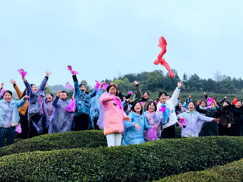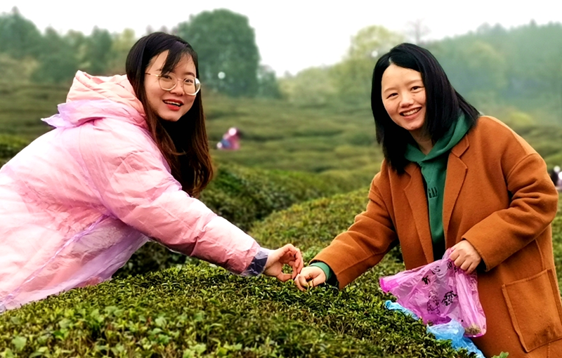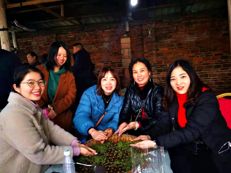 團(tuán)隊(duì)一路歡聲笑語到達(dá)了位于零陵區(qū)的長(zhǎng)壽村茶園。參加活動(dòng)的女職工們興致高昂,在教官的帶領(lǐng)下,走進(jìn)漫山遍野翠綠的茶園,體驗(yàn)采茶的樂趣;在茶場(chǎng)制茶師傅的演示下,大家親手體驗(yàn)了一把將剛采摘回來的茶葉通過發(fā)酵、殺青、揉捻、干燥、初制茶的傳統(tǒng)工藝。