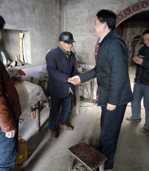 為貫徹落實市委、市政府精準扶貧的工作要求,按照集團公司統(tǒng)一安排和部署,在新春佳節(jié)來臨之際,市水務投開展了“精準扶貧、溫暖到家”活動。1月27日上午,市水務投副經理彭安君帶領公司辦公室、工會、財務等相關人員,前往冷水灘區(qū)蔡市鎮(zhèn)三龍?zhí)链澹情T看望我司精準扶貧對象唐治保老人,詳細詢問了他的生活現狀及身體健康狀況,給他送去了棉被、被套、毛衣、大米、食用油等慰問品及慰問金,并向唐治保老人送上了新春的祝福。