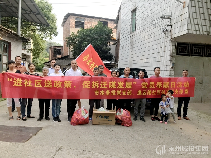 為慶祝建黨98周年,加強(qiáng)支部黨員黨性教育,增強(qiáng)黨員的責(zé)任感和使命感,7月10日下午,水務(wù)投黨支部支部委員黃小軍同志帶領(lǐng)支部黨員及入黨積極分子與逸云路社區(qū)機(jī)關(guān)黨支部共同開展“迎七一·進(jìn)社區(qū)送政策,促拆遷謀發(fā)展”黨員奉獻(xiàn)日活動(dòng)。