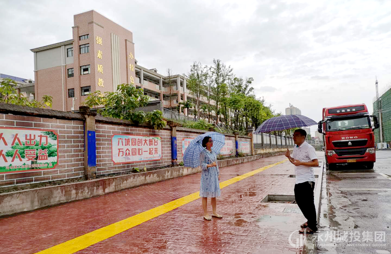圖為珍珠小學(xué)開學(xué),方便師生、家長出行而建成的站前南路人行道
