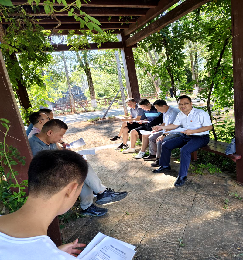 7月22日,清晨的第一縷陽(yáng)光穿透云層,照耀在辦公樓的門(mén)前。8點(diǎn)30分,支部全體黨員和入黨積極分子整裝待發(fā),胸前的黨徽在晨光中閃耀著堅(jiān)定的光芒。隨著車輛的緩緩啟動(dòng),我們踏上了前往永州森林植物園清風(fēng)園的旅程,心中滿是對(duì)即將展開(kāi)活動(dòng)的期待與敬畏。