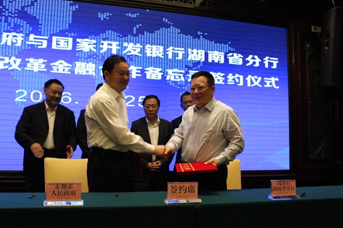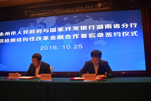 易佳良、梁慶凱分別代表永州市、國家開發(fā)銀行湖南省分行簽署供給側(cè)結(jié)構(gòu)性改革金融合作備忘錄