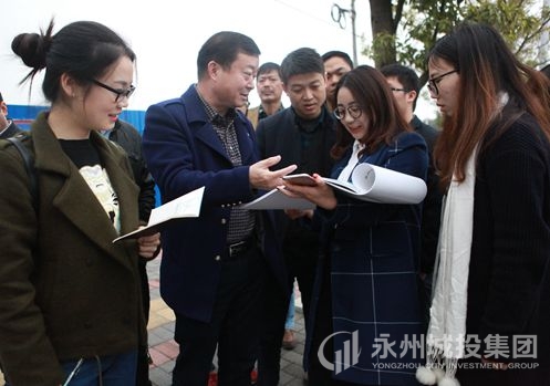 李世旺一行在河?xùn)|進賢路對設(shè)計方案進行研究
