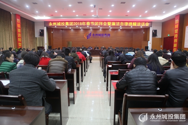 2月22日上午,永州城投集團舉行2018年春節(jié)團拜會暨廉潔自律提醒談話會,向辛勤奮戰(zhàn)在集團各條戰(zhàn)線上的全體干部職工致以美好的節(jié)日問候和祝福,同時在上班第一天進行廉潔自律法規(guī)學習和廉潔自律提醒談話。會議邀請到市紀委第三監(jiān)察室主任陳鑄里和市紀委派駐市經(jīng)信委紀檢組副組長廖春華出席指導,集團領導班子全體成員、中層副職以上干部及機關總部全體員工參加,會議由集團黨委副書記、總經(jīng)理蔣志剛主持。