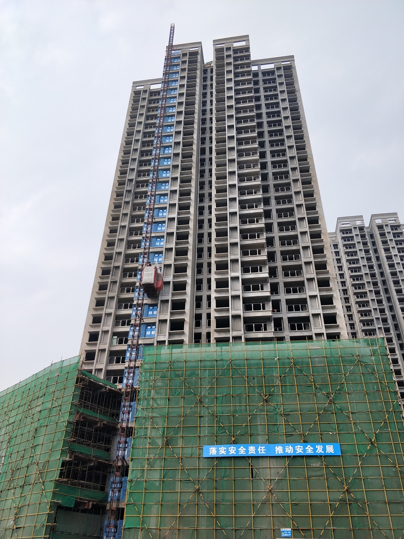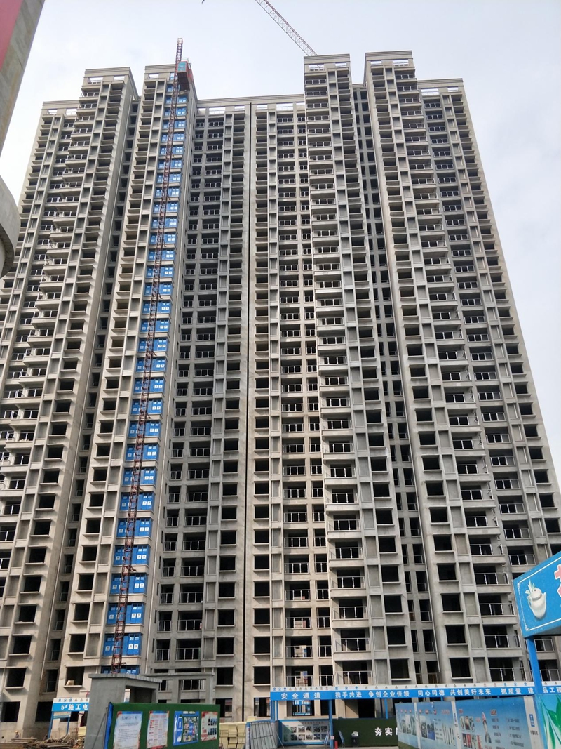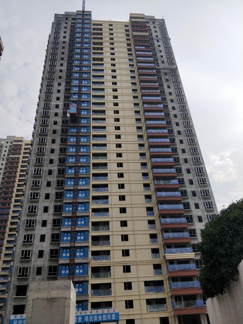 主體結(jié)構(gòu)完成;二次結(jié)構(gòu)墻體砌筑完成;內(nèi)墻抹灰、批頂完成;屋面保溫完成;陽臺欄桿施工完成;外墻抹灰、保溫施工中。