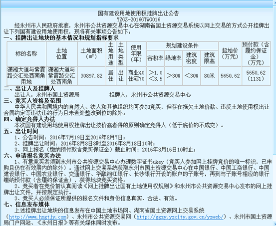 我司瀟湘大道與紫霞路交匯處西南角用地已掛牌公示,面積30897.82平方米,規(guī)劃用途為居住用地,歡迎有意者報名競買。(資產(chǎn)經(jīng)營管理部)