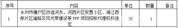 一、項(xiàng)目名稱:永州市棚戶區(qū)改造河?xùn)|、河西片區(qū)安置小區(qū)、湘江西岸片區(qū)道路及風(fēng)光帶建設(shè)等PPP項(xiàng)目代理機(jī)構(gòu)選定