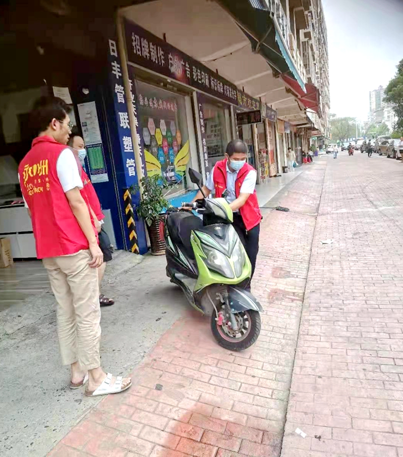 在銀象路(汽車西站-市教育局)段,志愿者們不斷往返來(lái)回巡查,對(duì)沿街商鋪門(mén)口摩托車、電動(dòng)車、汽車亂停亂放以及其他物品占用人行道當(dāng)街?jǐn)[放等不文明現(xiàn)象進(jìn)行文明勸導(dǎo),引導(dǎo)市民自覺(jué)遵守文明秩序,形成文明社會(huì)新風(fēng)尚。