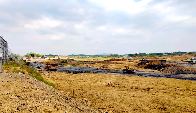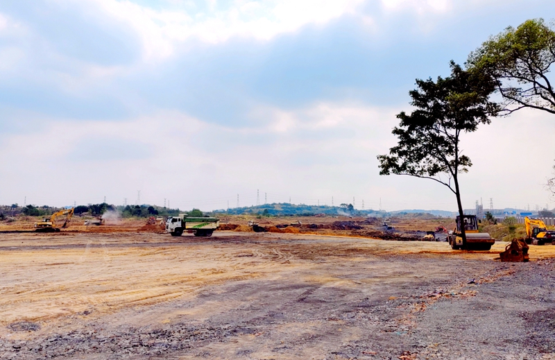 夏日炎炎,8月24日,在國際陸港智慧家居產(chǎn)業(yè)園標準廠房一期項目地塊施工現(xiàn)場,10余臺大型機械揮動著長臂氣勢如虹,機器轟鳴聲如鼓樂齊鳴,60余臺新型環(huán)保渣土車在工地川流不息,一派火熱繁忙的景象。