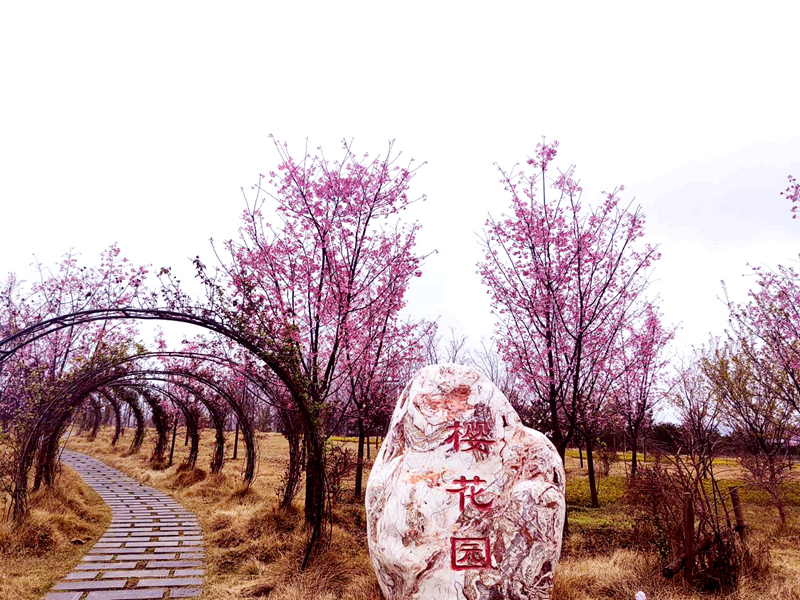 櫻花園內(nèi)種植早櫻500余株,中、晚櫻600余株,分布于公園入口、沿江環(huán)湖跑道及櫻花園等區(qū)域,占園內(nèi)面積一百余畝。盛放的櫻花爬滿枝頭,五六朵櫻花聚集在一起,形成花簇,花朵粉如霞帔,花開如云似雪,團團聳立,嬌美欲滴,美不勝收,市民紛紛拿起手機捕捉花叢中的美麗倩影。(資產(chǎn)公司 姜倩云)