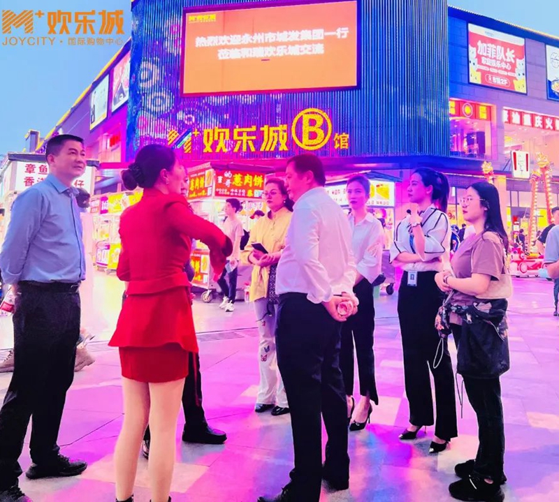 考察團一行來到歡樂城AB二館及24H夜經(jīng)濟網(wǎng)紅潮街“C位酒吧”、“星光夜市”,詳細了解歡樂城商業(yè)運營情況,對歡樂城MALL內(nèi)整體的業(yè)態(tài)規(guī)劃和24H夜經(jīng)濟網(wǎng)紅潮街對常德市夜經(jīng)濟發(fā)展做出的示范作用表示贊嘆。