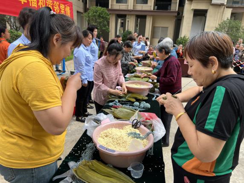 綠楊帶雨垂垂重,五色新絲纏角粽。又到一年粽葉飄香時(shí),在端午佳節(jié)來(lái)臨之際,為更好地傳承和弘揚(yáng)中華優(yōu)秀傳統(tǒng)文化,讓居民能夠體驗(yàn)到濃濃的節(jié)日氛圍,6月7日,永州城發(fā)物業(yè)在將軍嶺等項(xiàng)目小區(qū)組織“粽葉飄香迎端午,幸福和諧鄰里情”包粽子比賽活動(dòng)。