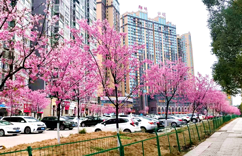 近期,湘永路映山嶺停車(chē)場(chǎng)迎來(lái)一場(chǎng)絢麗的櫻花盛宴,300余棵“粉紅佳人”早櫻連片盛開(kāi),似粉色的云霞璀璨綻放,為映山嶺片區(qū)暈染出一抹醉人的春日色彩。