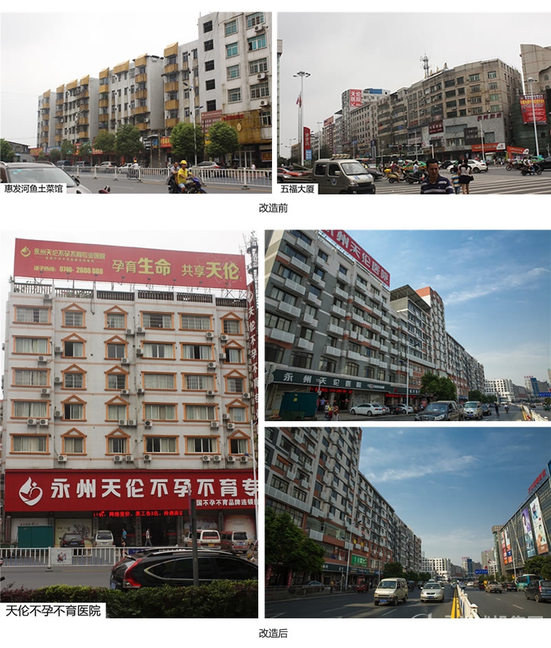 永州市零陵路建筑立面綜合提質(zhì)改造工程位于冷水灘區(qū)零陵路,工程范圍零陵路紅太陽廣場至零陵北路加油站及鳳凰路瀟湘大橋西橋頭至舜徳摩爾段,路線全長2000m,包括沿街兩側(cè)69棟建筑屋面改造造型,舊鋁合金窗更換,外墻改造66000m2(噴涂外墻漆、外掛鋁板或花崗巖),門頭改造,亮化工程及監(jiān)控工程,分兩個標(biāo)實施,預(yù)計總投資10000萬元。施工單位為一標(biāo)湖南撈刀河建設(shè)集團(tuán)有限公司、二標(biāo)湖南省天宇建設(shè)工程有限公司,監(jiān)理單位為湖南己太項目管理有限公司。