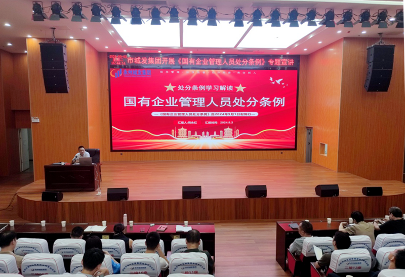 為進(jìn)一步深化黨風(fēng)廉政建設(shè),增強(qiáng)集團(tuán)公司管理人員的紀(jì)法意識,9月3日下午,市城發(fā)集團(tuán)開展《國有企業(yè)管理人員處分條例》專題培訓(xùn)會議。集團(tuán)公司紀(jì)委書記周永紅主持會議并解讀《條例》,公司中層正副職及內(nèi)設(shè)部室全體人員共100余人參加會議。