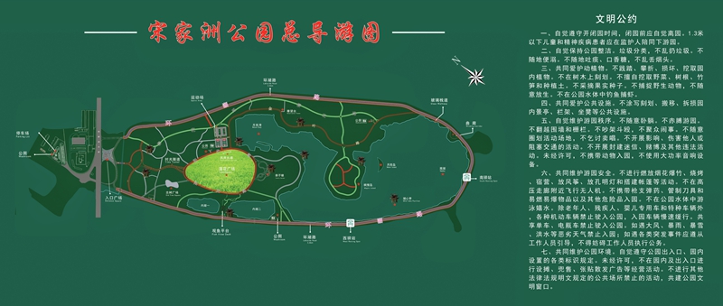 公園里有松園、竹園、梅園、果園、柿子園、櫻花園、紫薇園、月季園、玉蘭園、海棠園、紅楓園、楓香園、丁香園、杜鵑園等多個園區(qū),約14000株喬木。