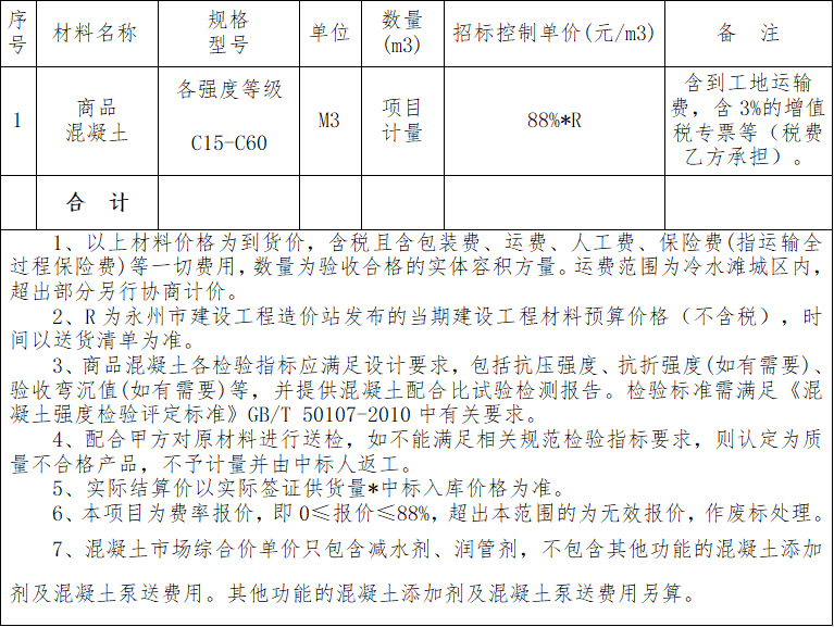 招標(biāo)商品混凝土規(guī)格及控制價(jià)表